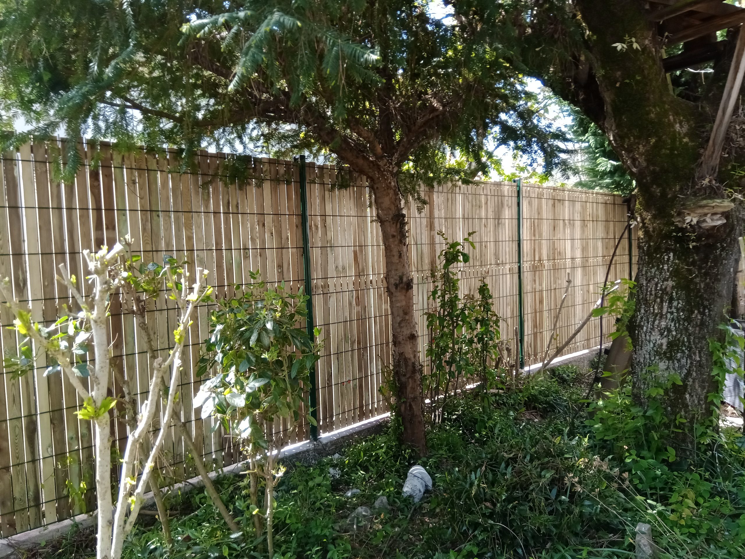 Clôture de panneaux rigides avec occultant bois a Cahors.